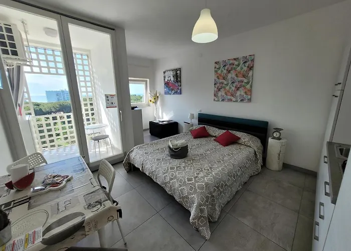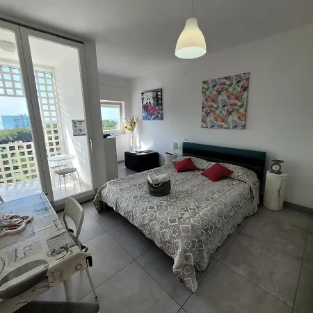 Beliggende i Sabbiadoro område, tilbyder Rosato Sea View Apartment ferielejlighed sine gæster et vandland og en golfbane. Indkvarteringen ligger 800 meter fra Lignano Sabbiadoro-karrusellen og 25 minutters gåtur fra Parco Hemingway.